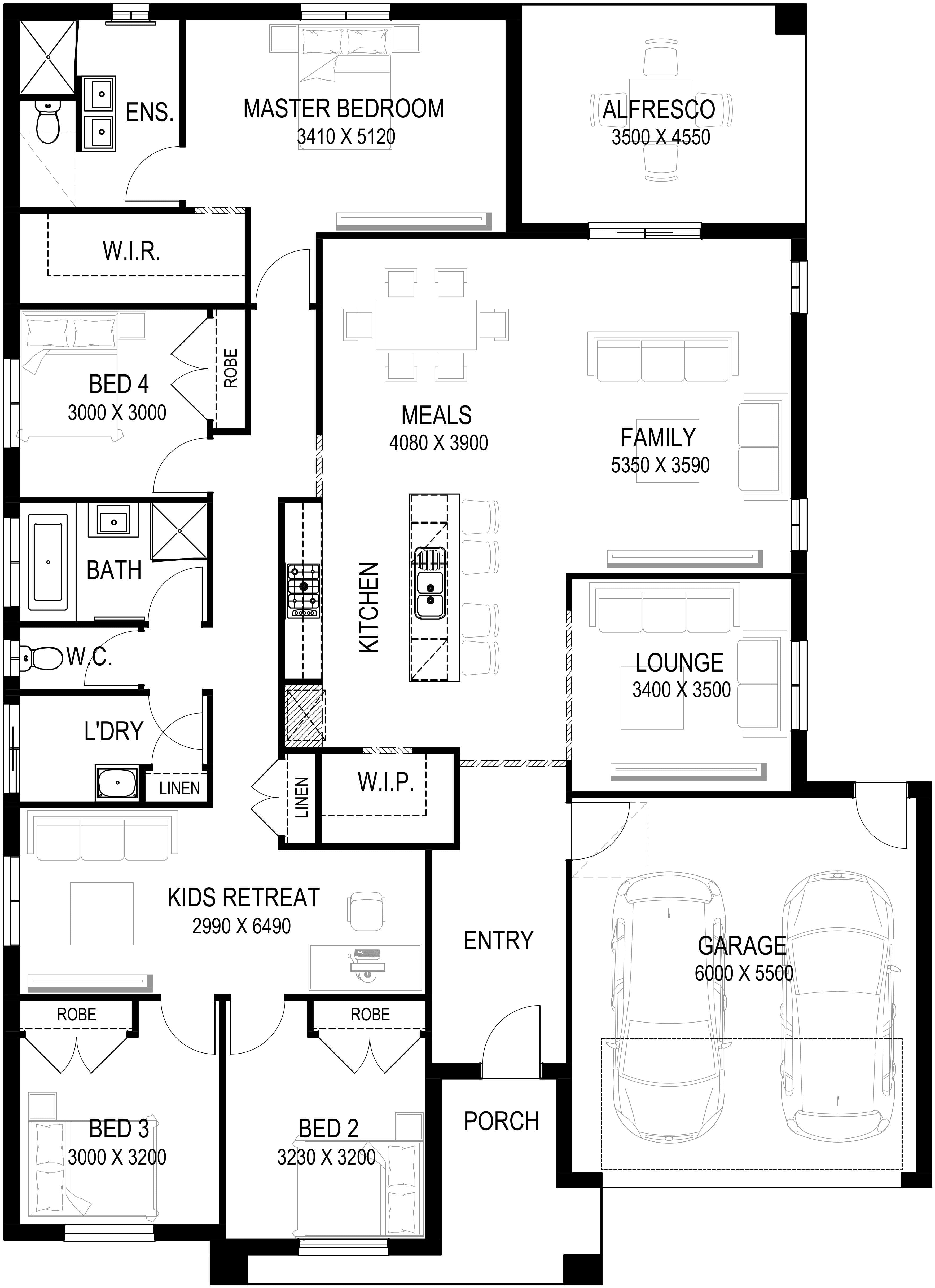 Archer 29 is the perfect balance of family living and modern design. With four spacious bedrooms, including a private master suite with walk-in robe and ensuite, this home is built for both comfort and style. Multiple living areas, including a lounge, family room, and a dedicated kids’ retreat, ensure everyone has their own space. The open-plan kitchen with walk-in pantry flows into the meals and family areas, extending seamlessly to the alfresco for effortless indoor-outdoor living. With a double garage and clever storage throughout, the Archer is designed to grow with your family.