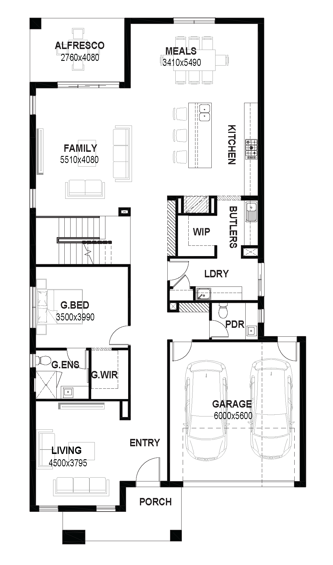 The Astra 45 is a spacious 44.63 square double storey home designed for modern family living. With five bedrooms including a private ground-floor guest suite, a luxurious master retreat with dual walk-in robes, multiple ensuites, and an upstairs rumpus with balcony, it delivers comfort and flexibility across both levels. An expansive open-plan kitchen with butler’s pantry anchors the home, flowing seamlessly to the family, meals, and alfresco for effortless entertaining.