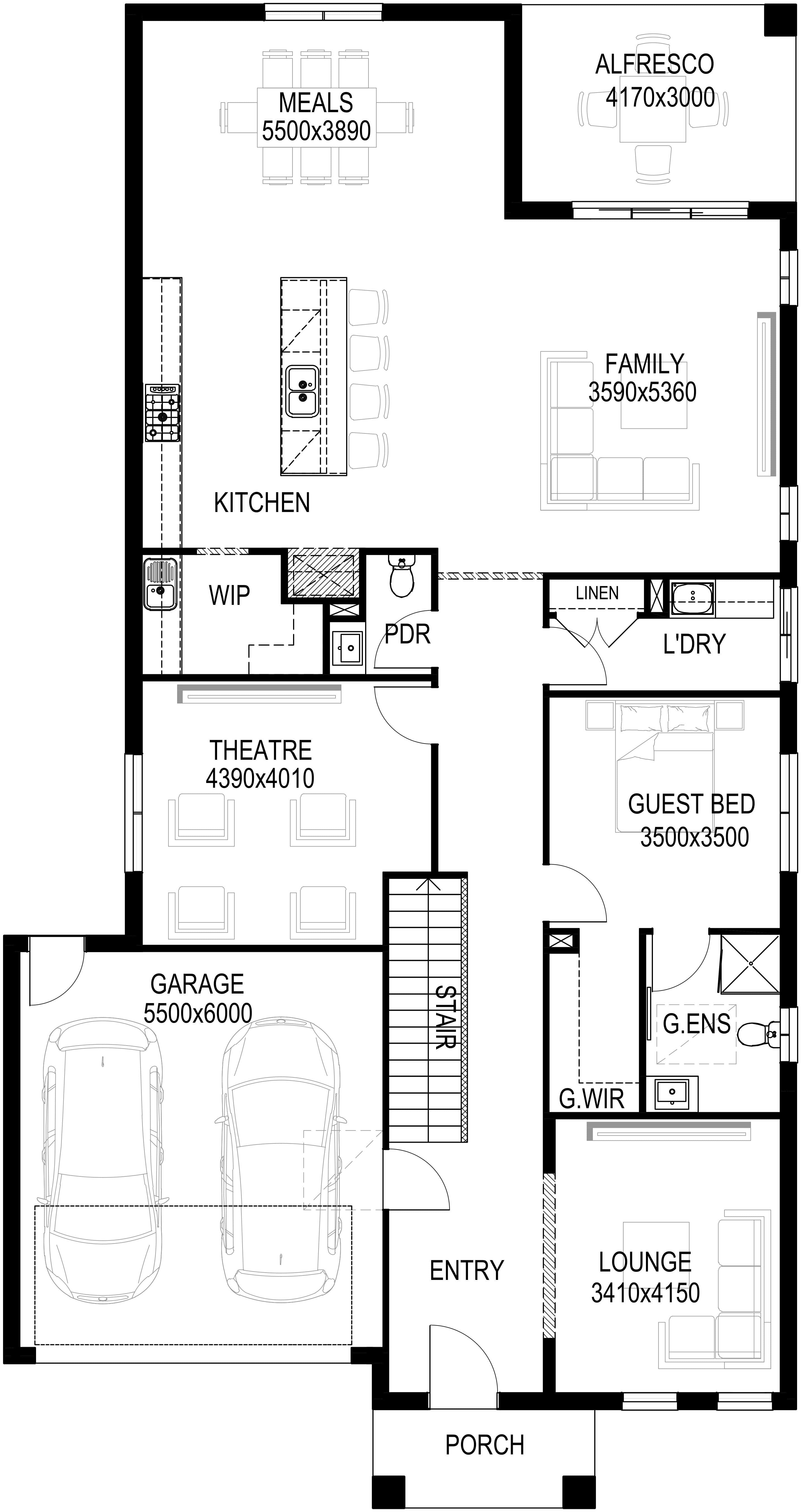 Colorado 24 combines space and functionality in a beautifully balanced two-story design. Featuring an impressive Grand Master suite with private balcony and lavish ensuite, multiple living zones including theatre, rumpus, and lounge, plus a dedicated guest suite downstairs, this home offers flexibility for every stage of family life. The open-plan kitchen, meals, and family area flow seamlessly to the alfresco, making it perfect for entertaining. With five bedrooms, four bathrooms, and a study, the Colorado is where style meets practicality for the ultimate family lifestyle.