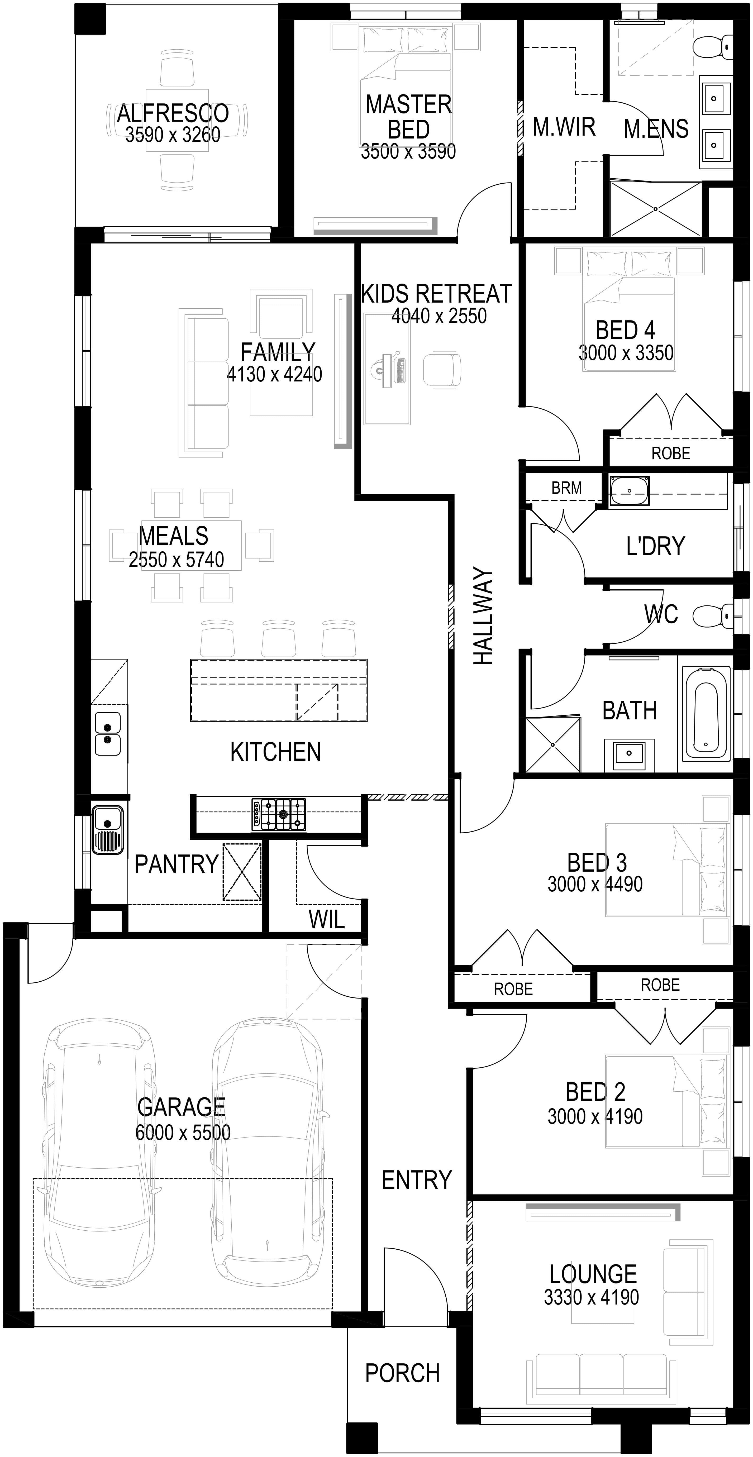 Macedon 27 is designed to bring people together, with a spacious open-plan family and meals area at its core. With four bedrooms, including a master suite complete with walk-in robe and ensuite, the home balances private retreats with shared spaces. A welcoming lounge at the front adds flexibility, while the modern kitchen with pantry makes entertaining effortless. Generous proportions, smart flow, and thoughtful design make the Macedon perfect for families who want both comfort and style.