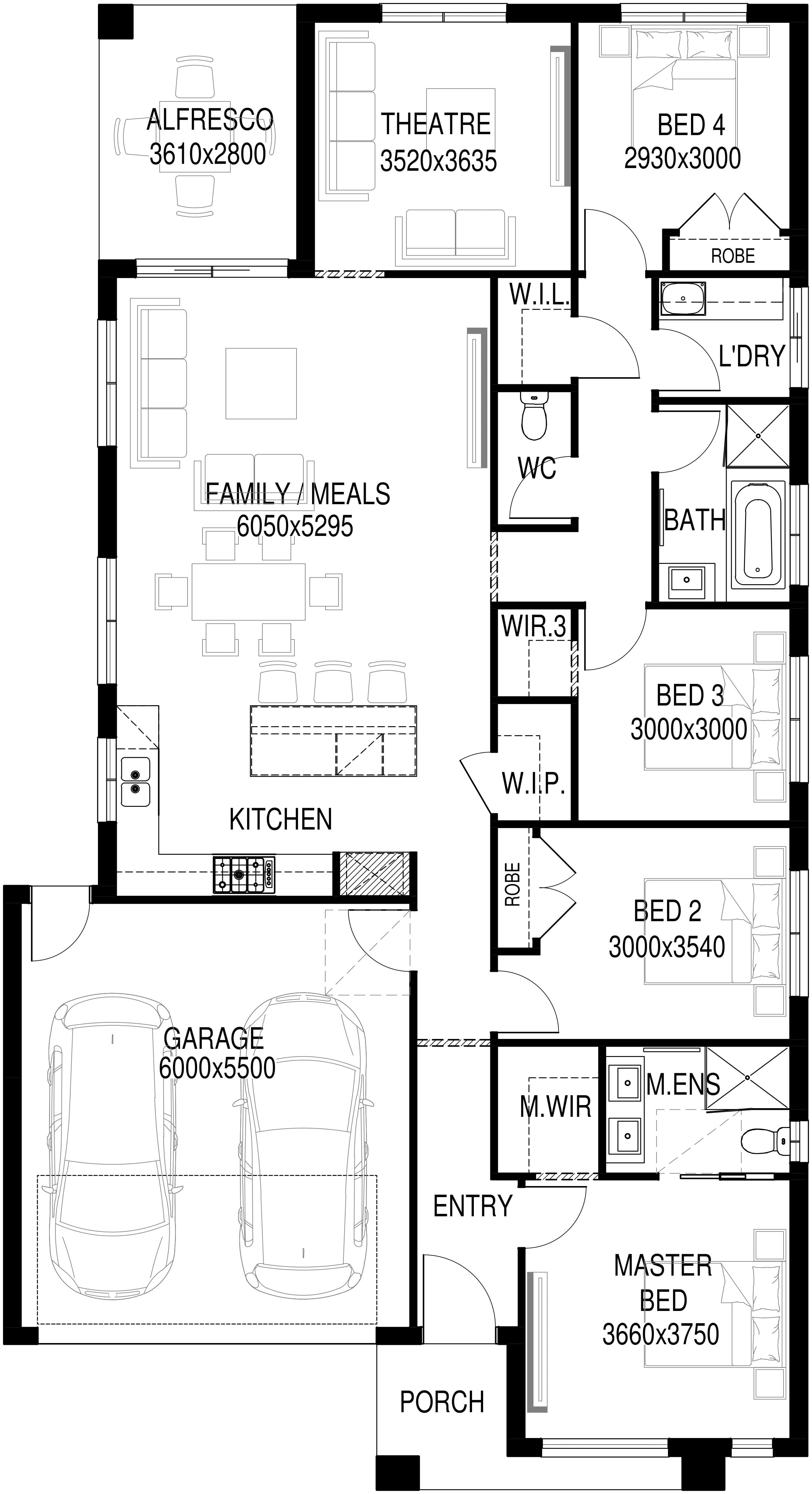 The Macquaries' combine smart design with family-friendly living. Featuring four bedrooms, including a master suite with walk-in robe and ensuite, it’s crafted for comfort and privacy. The open-plan family and meals area forms the heart of the home, flowing naturally to the alfresco for easy entertaining. With a theatre room, modern kitchen with walk-in pantry, and thoughtful storage throughout, the Macquaries' offers the perfect balance of style, function, and everyday ease.