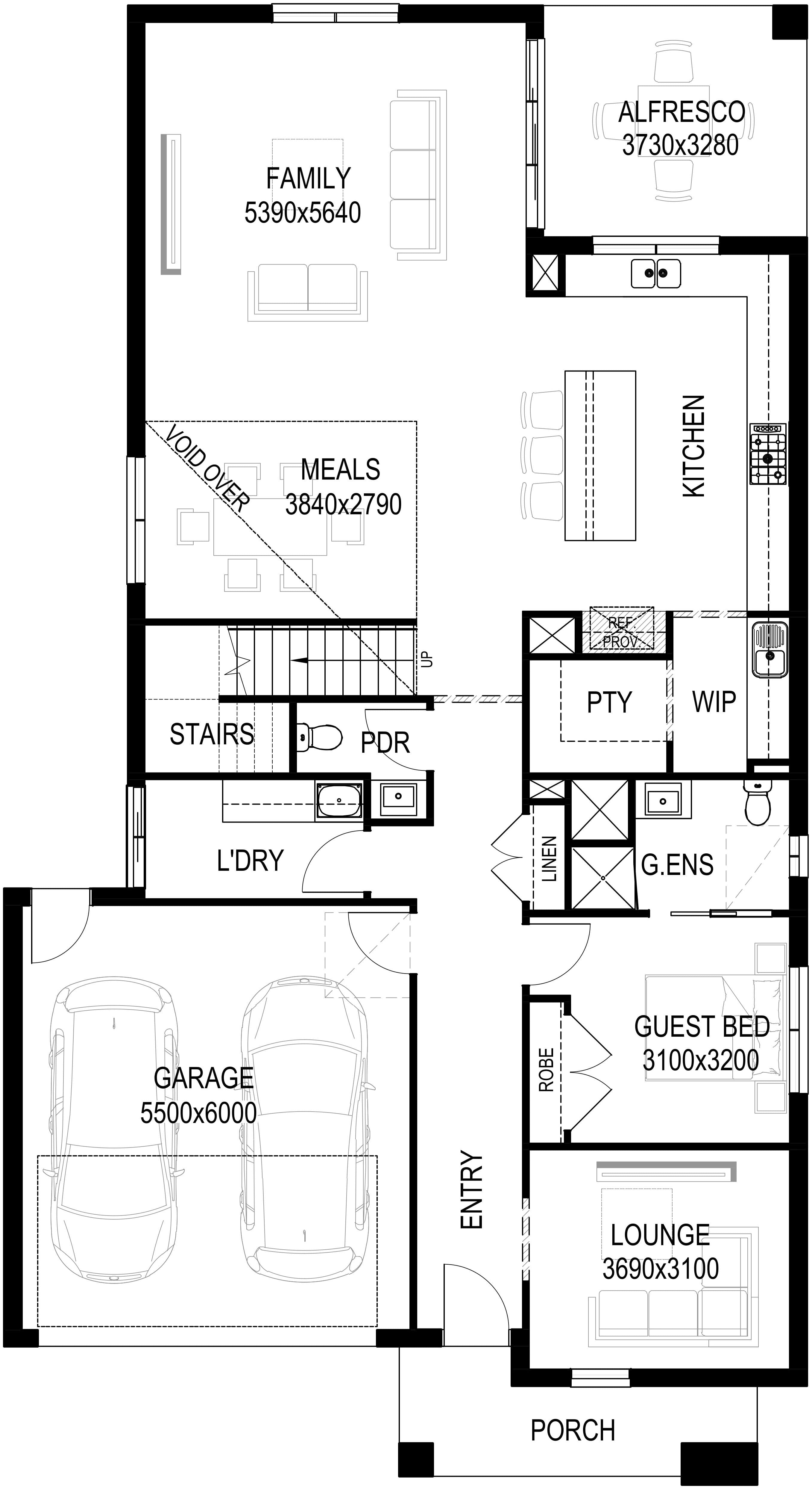 The Miami 42 blends striking design with everyday ease. A guest suite, lounge, and open-plan family hub with meals, kitchen, and alfresco set the tone for stylish entertaining downstairs. Upstairs, a light-filled void leads to a grand master suite with twin walk-in robes and luxe ensuite, complemented by four additional bedrooms, a spacious rumpus, and balcony. With modern flow and generous proportions, this home is built for families who love to live big.