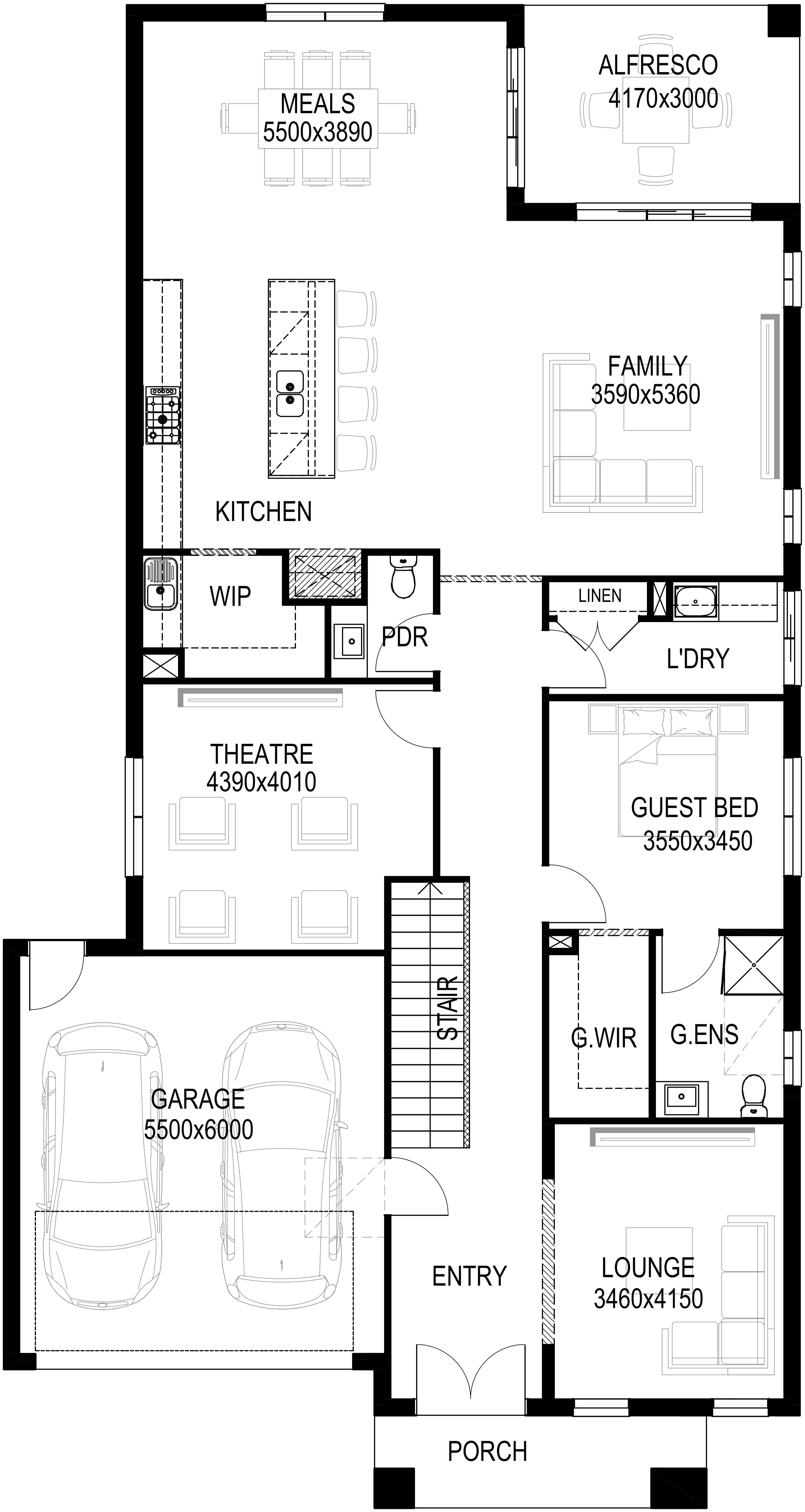 Stirling 46 is a home designed to impress, offering an abundance of space and luxury across two expansive levels. The ground floor boasts a gourmet kitchen with a walk-in pantry, open-plan meals and family zone, and seamless flow to the alfresco, alongside a theatre, lounge, and private office - perfect for work or entertaining. Upstairs, the master suite delivers true indulgence with a large walk-in robe, ensuite, and balcony retreat, complemented by three additional bedrooms each with their own ensuite, plus a rumpus and study. With multiple living areas and a design that balances elegance with functionality, the Stirling 46 is the ultimate family residence.