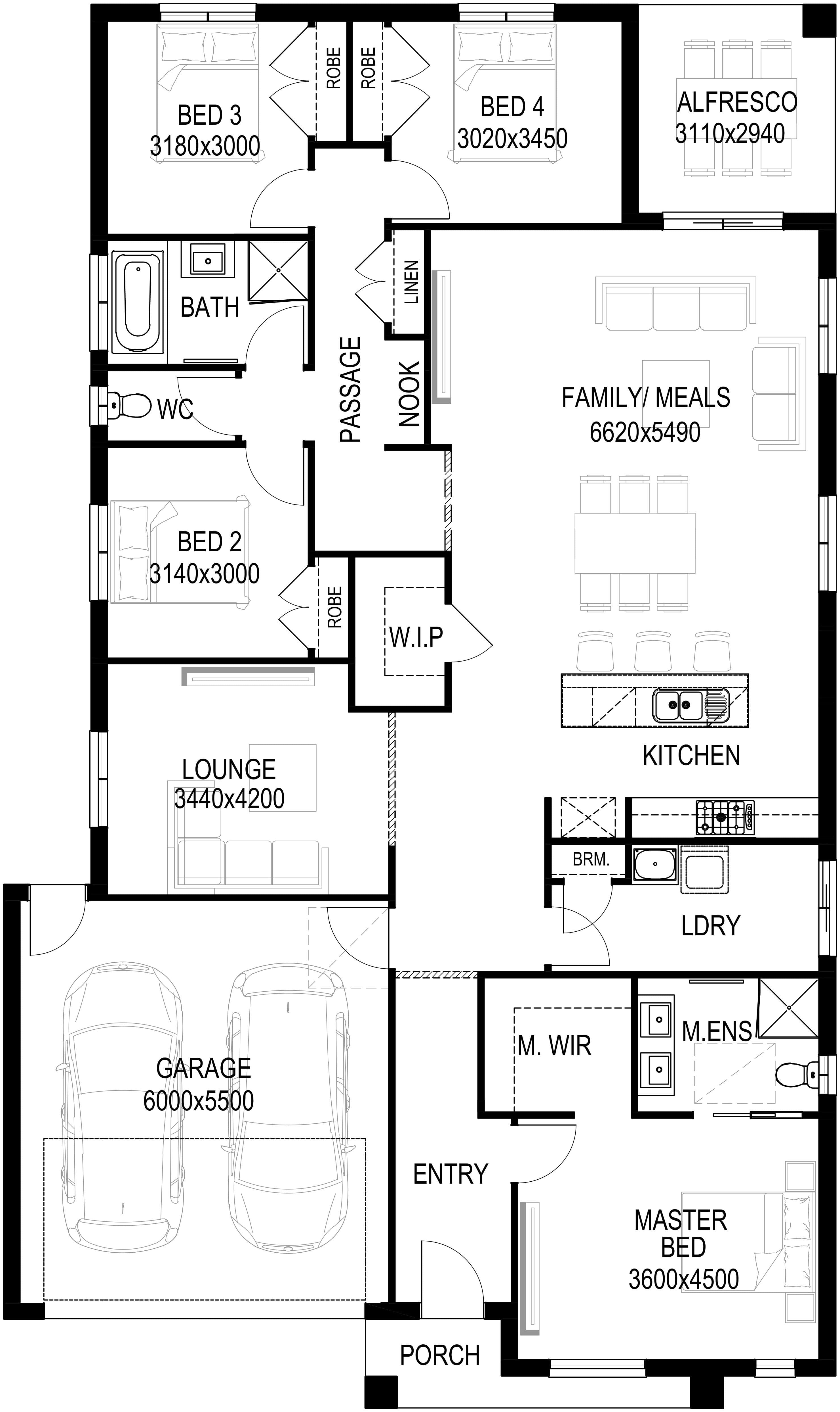 Wellington 25 delivers the perfect mix of space and style, designed to suit the needs of modern families. Featuring four bedrooms, including a private master suite with walk-in robe and ensuite, there’s room for everyone to relax. The expansive open-plan kitchen, meals, and family area flows effortlessly to the alfresco, while a separate lounge offers even more flexibility. With a walk-in pantry, double garage, and thoughtful storage throughout, the Wellington makes everyday living both practical and enjoyable.