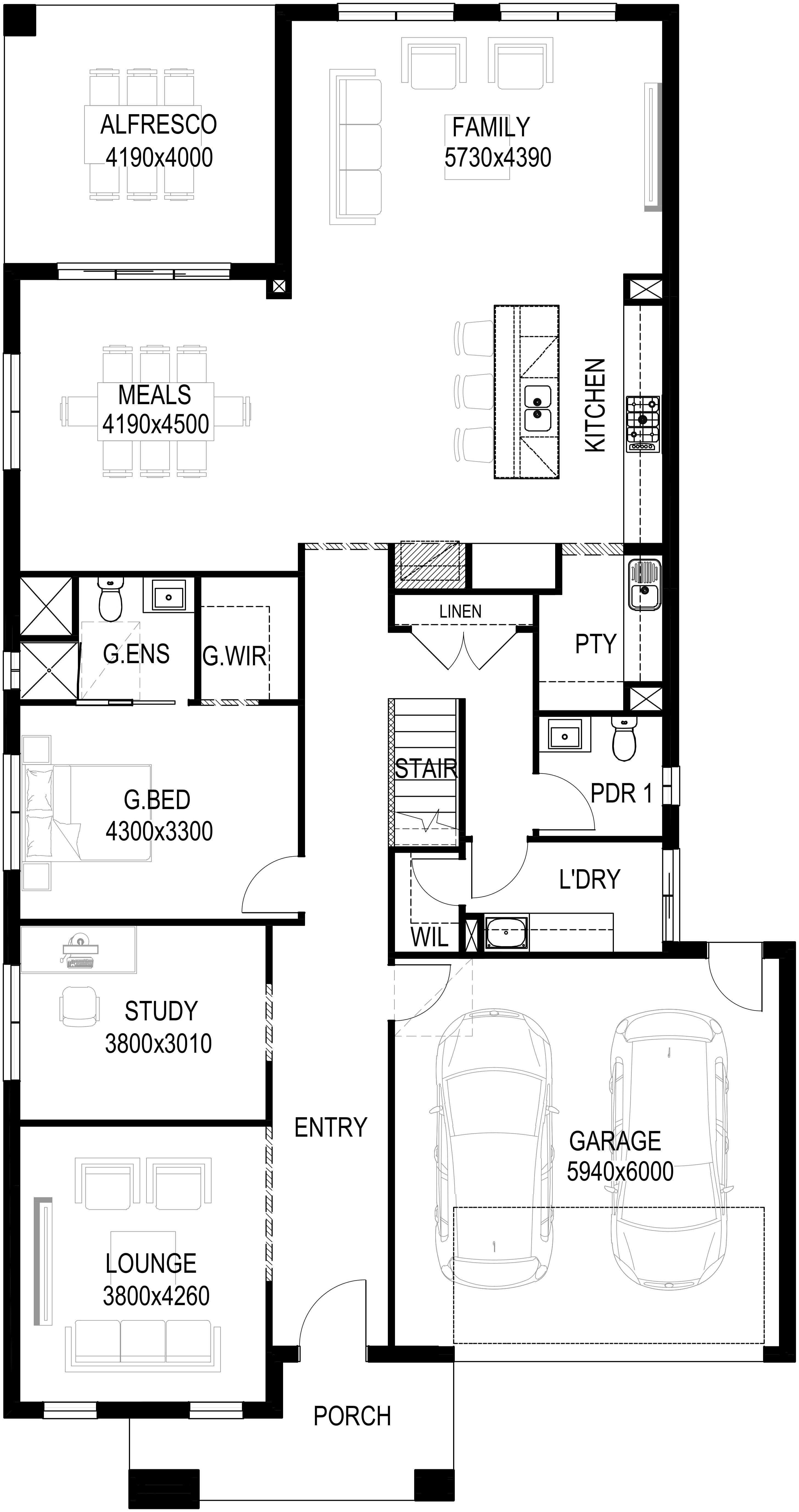 Wilton 46 is a home designed to impress, offering an abundance of space and luxury across two expansive levels. The ground floor boasts a gourmet kitchen with a walk-in pantry, open-plan meals and family zone, and seamless flow to the alfresco, alongside a theatre, lounge, and private office - perfect for work or entertaining. Upstairs, the master suite delivers true indulgence with a large walk-in robe, ensuite, and balcony retreat, complemented by three additional bedrooms each with their own ensuite, plus a rumpus and study. With multiple living areas and a design that balances elegance with functionality, the wilton 46 is the ultimate family residence.